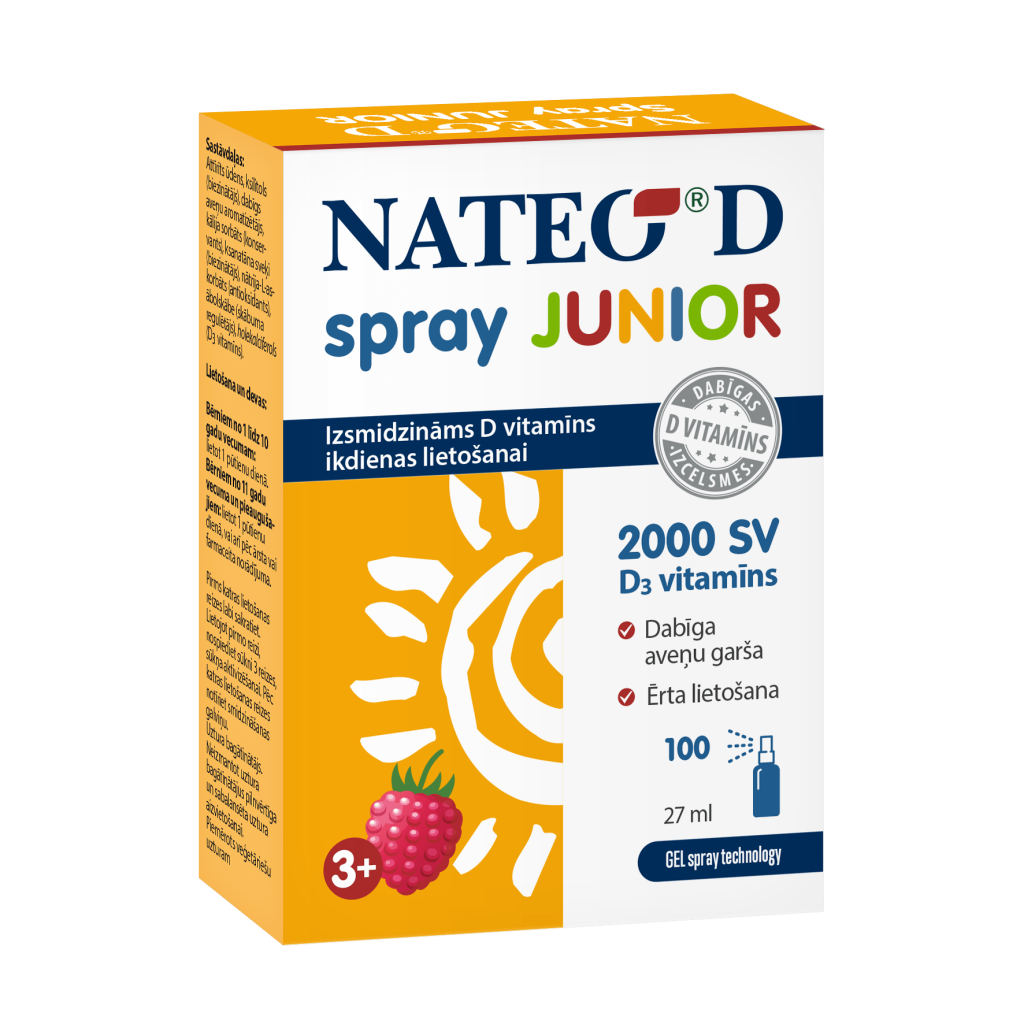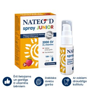 - 2000 SV dabiska D vitamīna katrā spreja devā – ērta un precīza dozēšana